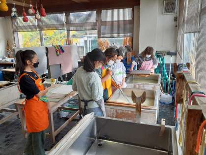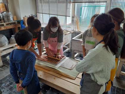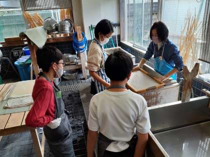 いつもの学校にいる時と雰囲気の変わらない1組でしたが、いよいよ紙漉きが始まると、真剣モードにスイッチオン。