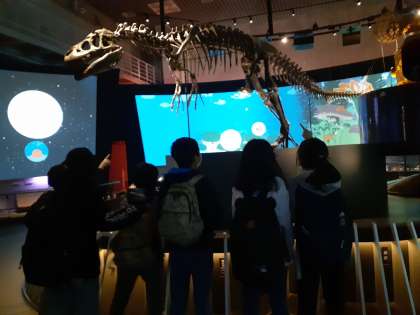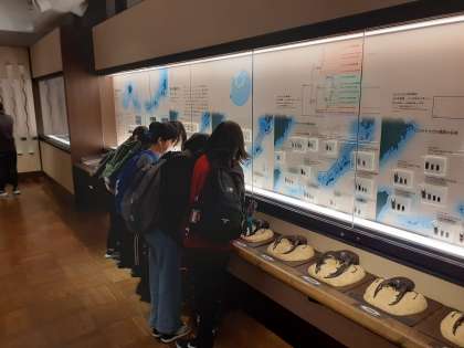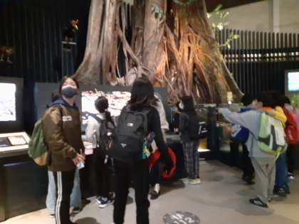 最初の見学場所、上野の国立科学博物館でグループ行動しています。