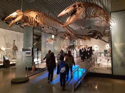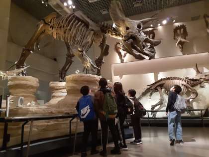 国立科学博物館の展示の中でも、5年生を引き付けているのは、トリケラトプスや海竜の骨格標本!