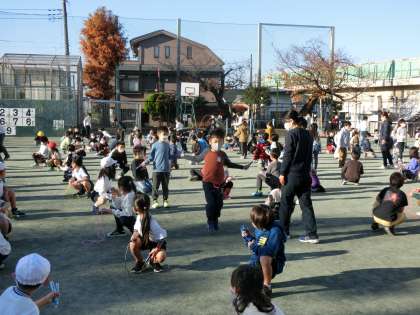 寒くなってきましたね。今日は短縄リレーなので体を温めましょう。