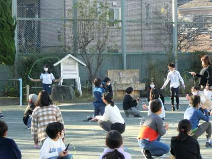 クラスで順番に決められた回数を跳んで、リレーしていきます。