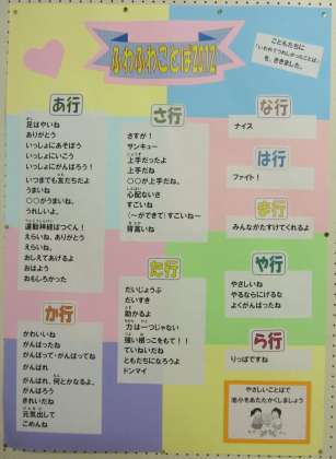 *ふわふわことば・・・ 阿部 利彦先生(所沢市教育委員会 健やか輝き支援室)が紹介する考え方です。相手をはげまし、認める言葉を使うと、集団の雰囲気がやわらかくなり、自信ややる気が育ち、個々が「いいところ」を発揮し、よりよい成長につながる…と言われています。