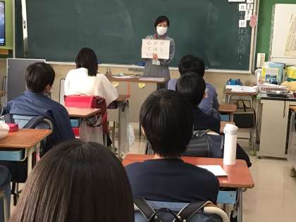 今日は保護者をゲストティーチャーにお招きして「ネイリスト」の仕事についてお話をしていただきました。