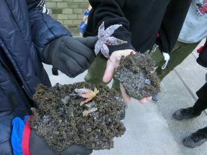 「先生、霜柱がすごいし、葉っぱも凍っていたよ!」