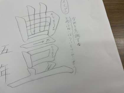 上手に書けるポイントを載せた紙に練習してから、