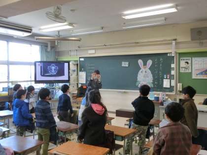 「4年生のように3学期の目標、今年の目標、希望をもっていると思います。まずは自分自身が努力や一生懸命に取り組むことが大切ですが、それだけでは実現しません。学校には主事さんや先生方、また地域の方々も協力してくれます。周りの人と一緒に実現してほしいです。