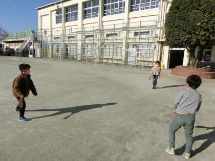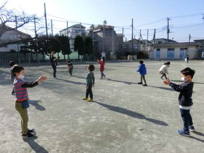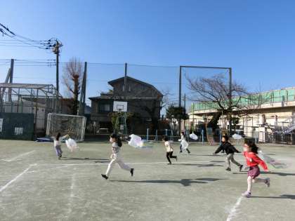 凧上げ、竹とんぼ、羽根つきの3つの遊びを楽しみました。