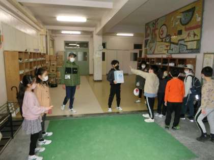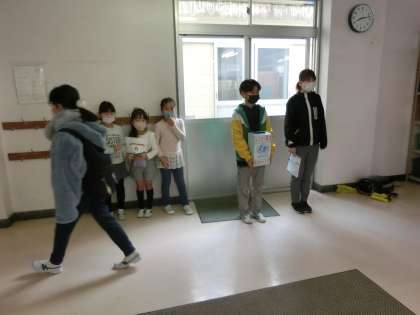 今日のあいさつ運動の担当は2年1組。