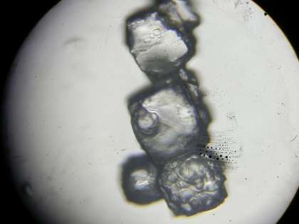 顕微鏡をのぞいて比べると結晶の形が違うことを発見しました。
