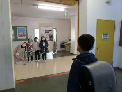 かわいい1年生にお出迎えしてもらい、