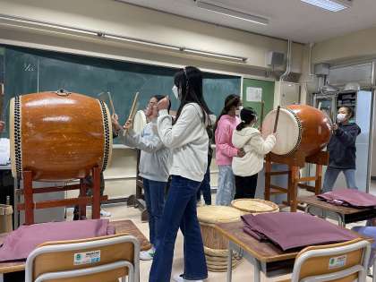 慣れた頃に、実際に太鼓を叩いていきました。