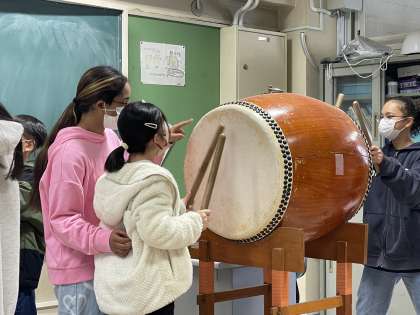 6年生から5年生へ・・・八木節の太鼓引き継ぎ