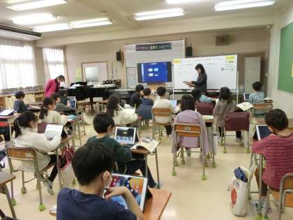 歌「おかしのすきな魔法使い」の合唱を練習している3年生。