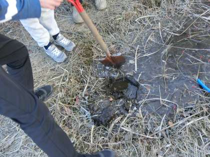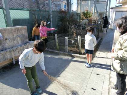 その氷を割ってみたり、ほうき草で掃除してみたり、