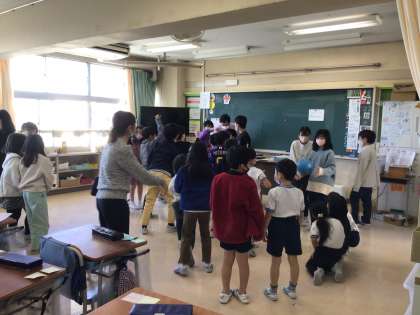校庭では色おに、王様じゃんけん、室内ではハンカチ落とし、アイスマン・・などあそびのバリエーションが班ごとに様々あったのが印象的でした。昨日は展覧会の片付けでも大活躍だった5年生、少しずつ学校をひっぱる学年として活躍しています。