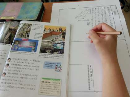 「自然災害を防ぐ」の単元のまとめ作りをしています。