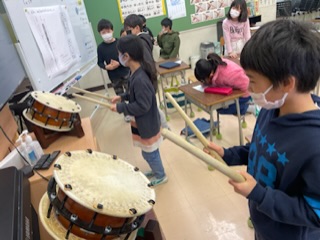 先週、今週と日本のお囃子の音楽を聴いてきた3年生。