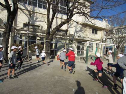 校内長縄大会にむけて、朝と20分休みの1日2回の「なわとびタイム」が始まりました。校内長縄大会では、5分間で長縄を何回飛べるかをカウントします。