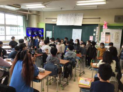 昨日1年生が6年生の教室にやってきました。
