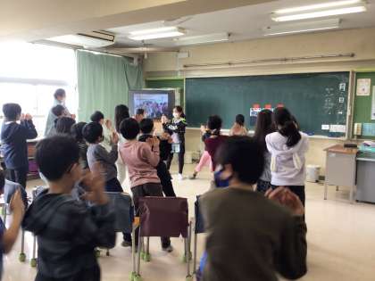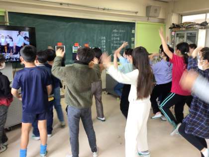 オンラインでつなぎ、それぞれ出し物を披露しました。