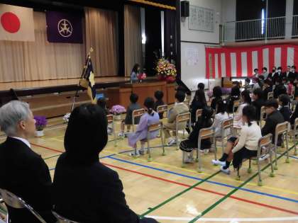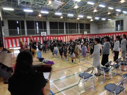 式の終わりには、式場にいる全員で校歌斉唱し、
