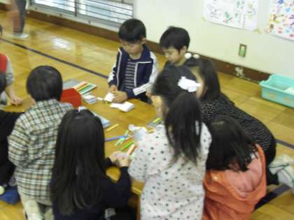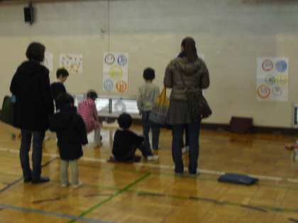 まとあて、さかなつり、ボーリング、びゅんびゅんごま、ぴょんぴょんがえる…など、新1年生でもできるお店を一生懸命考え、準備しました。お兄さん、お姉さんとして仲良く一緒に遊ぶことができました。