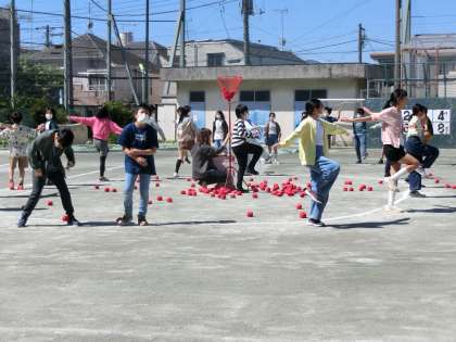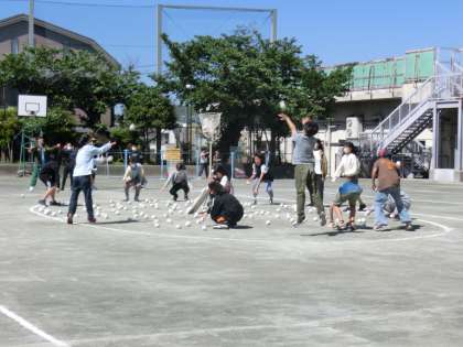 5月13日(土)のスポーツフェスティバルに向けて、練習が始まりました。5月2日の1校時には、6年生が練習を行いました。6年生は、1年生と兄弟学年を組んで競技を行います。今日は「チェッコリ玉入れ」の練習を行いました。