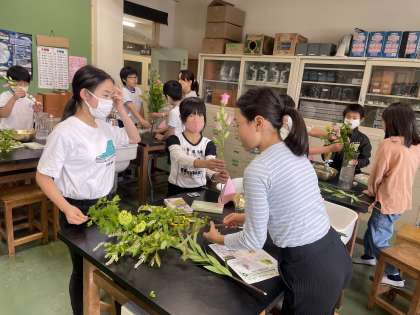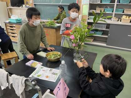 「どうやっていけようか」と工夫して花をいける様子が見られました。