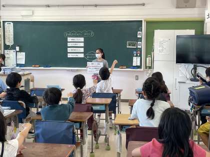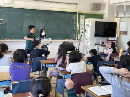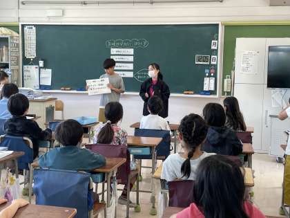 今日は、各チームの5年生リーダーが3年生の教室に行き