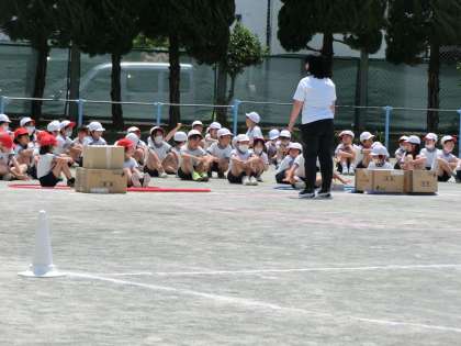 種目は、お助け綱引きとお猿のかごやレースです。