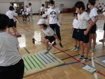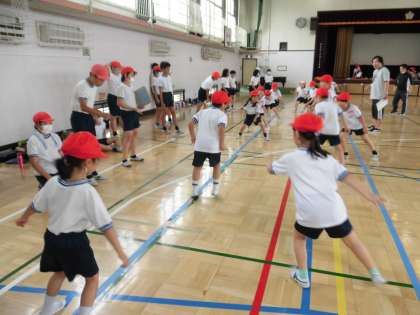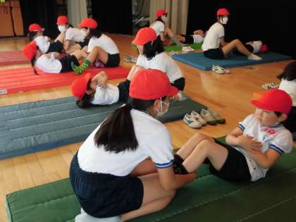 一緒に反復横跳びや上体起こし、立ち幅跳びなどの