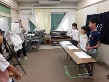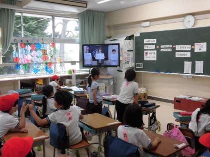 三択形式のクイズにし、全校児童に答えてもらいながら、
