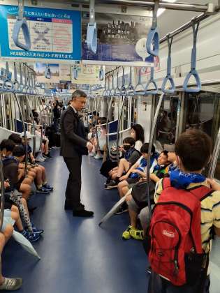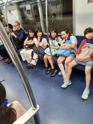 4年生、日生劇場へ劇団「四季」の観劇に向かっています。久しぶりの公共交通機関利用です。