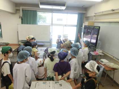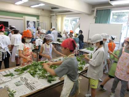 7/7(金)4年生 枝豆(枝からの鞘とり)