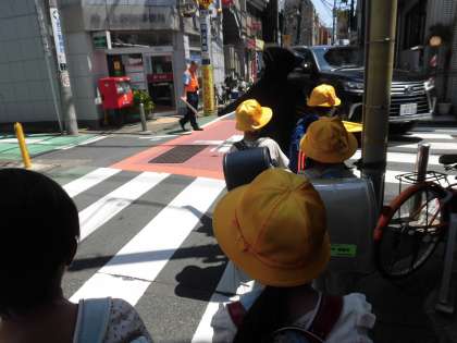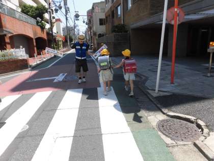 “呼びかけ隊”の方々の子供たちの下校を見守る視線、