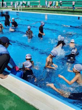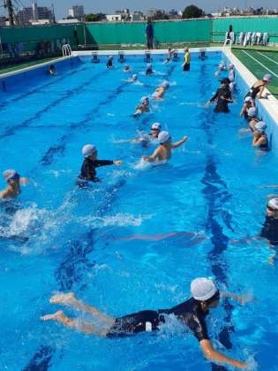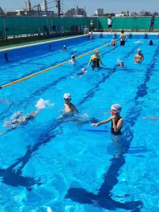 泳力別に別れ、長くゆったり泳いだり、息継ぎの練習をしたりと、