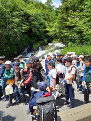 三名瀑湯滝の迫力に驚いた6年生ですが、