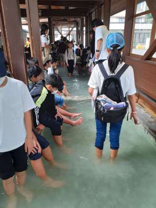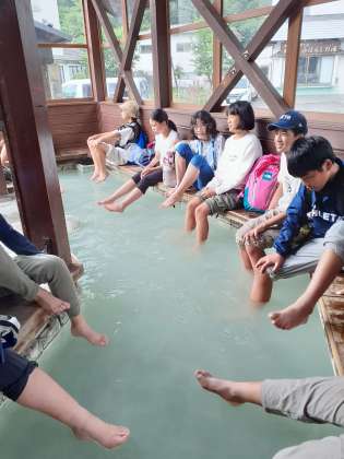 6年生 足湯も気持ちいい