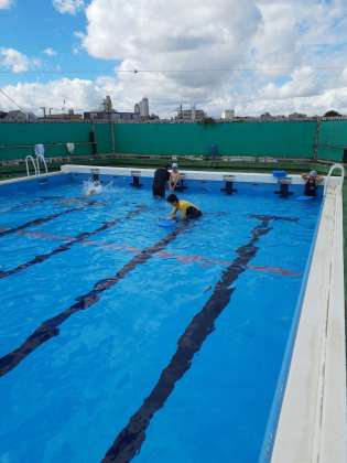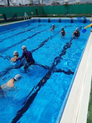 水慣れも、その後の課題別練習も子どもと先生がペアになって、じっくり練習しました。