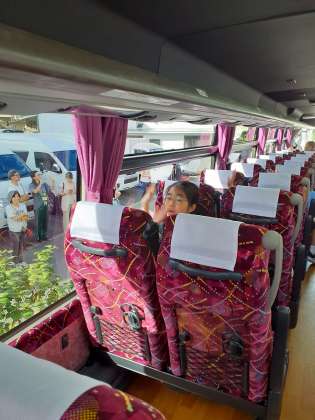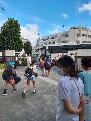 5年生、学校生活初の宿泊行事、「川場移動教室」に出発しました。