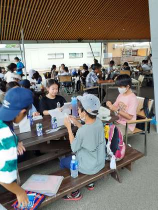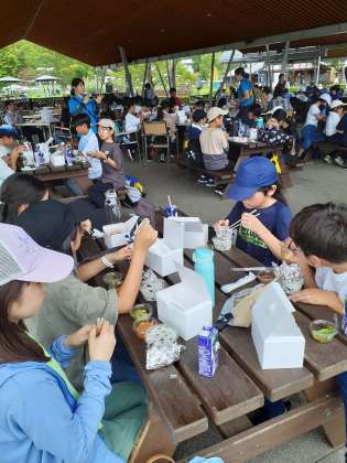 川場最後のみんなとの食事は、田園プラザの広場でお弁当をいただきました。