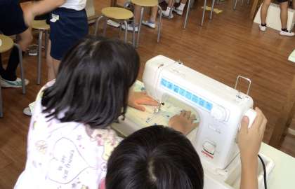 今学期は、ミシンを使って、エプロンづくりに挑戦です。