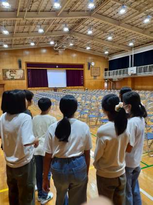 学校の様子は、富士中学校の2年生が、6名グループに二人ずつ就いて案内してくれました。