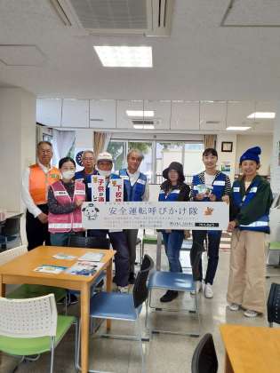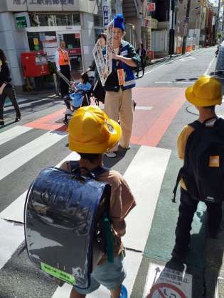 往来する車に、子どもたちが下校してくることの注意を呼びかけてくださる「安全運転見守り隊」