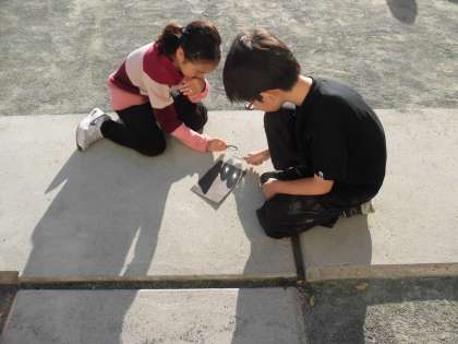 そこがうまくいかず、虫めがねの向きや地面からの高さを