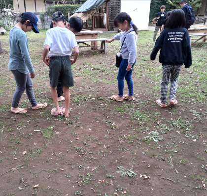 昭和のはじめの頃の世田谷の町並みを残した民間園で、昔の暮らしの解説をしていただいたり、残っている民家の見学をしたり、草履を履く体験をしたりしました。