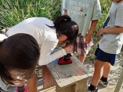 11月2日、2年生は、下北沢にあるののはら広場に町たんけんに行きました。ののはら広場は、都会にありながら、自然がたくさんある場所です。広場では、シモキタ園藝部の方々が待っていてくださり、都会に自然を残すためにどのような活動をされているか説明してくださいました。説明の後は、実際に自然観察です。蝶々や虫を見付けたり、珍しい形の枝を見付けたりとあっという間に時間が過ぎてしまいました。