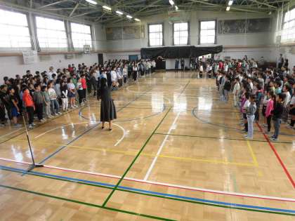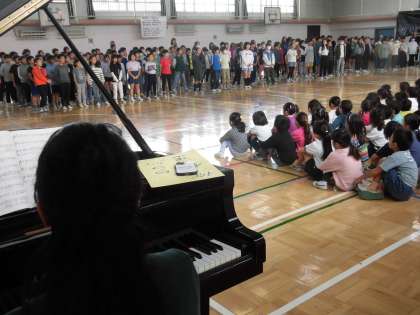 そのスタートは、体育館での音楽朝会。