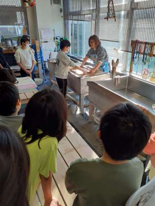 山崎小学校の紙漉き教室を訪れました。
