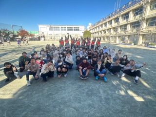 代沢青少年地区委員の皆様をお迎えして、冬晴れの下、校庭と中庭の落ち葉掃きをしました。